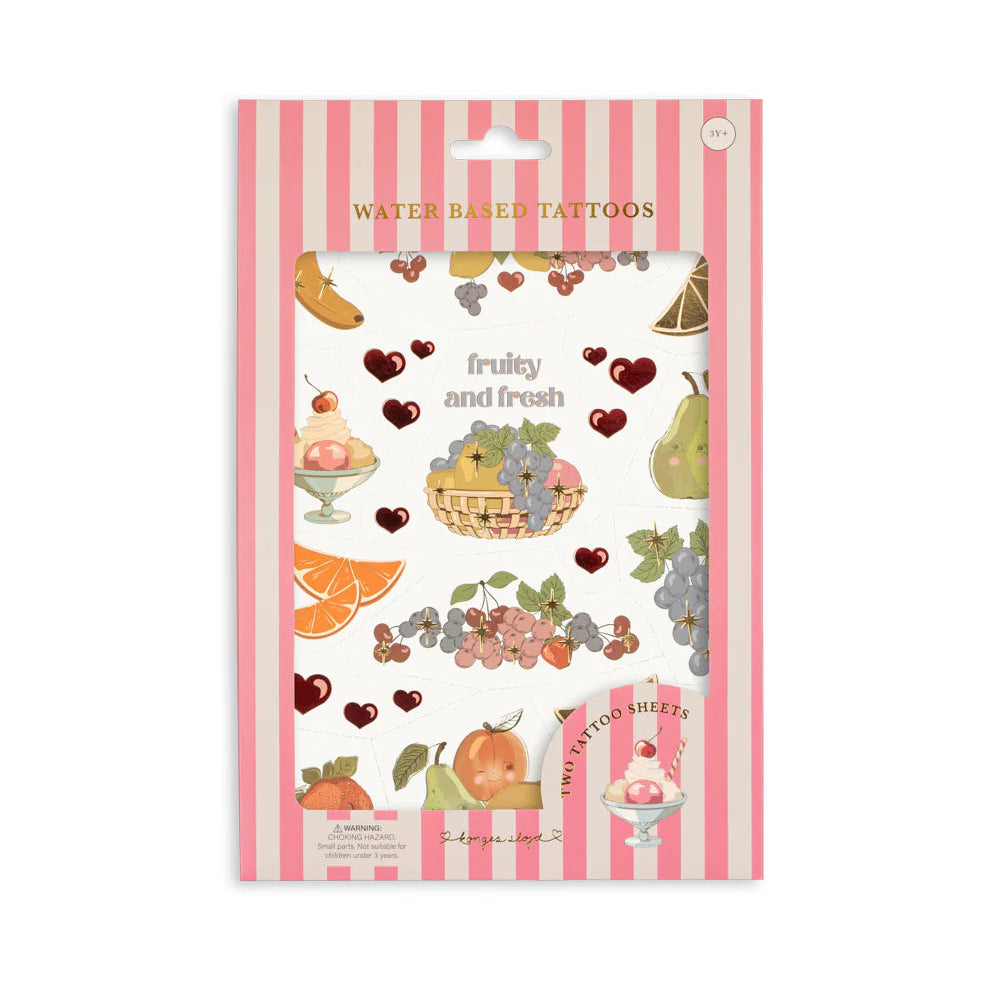Ponad 30 tymczasowych tatuaży podzielonych na trzy arkusze.