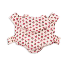 Miękka i przytulna lalka ubrana w uroczy zestaw z organicznej bawełny, w skład którego wchodzą bluzka i spodnie. Łatwa do zakładania i zdejmowania przez dziecko.