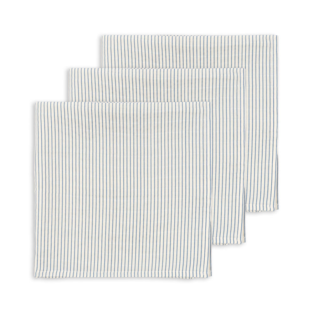 Konges Slojd - Zestaw pieluszek muślinowych z bawełny organicznej, 3 szt., Stripe Bluie