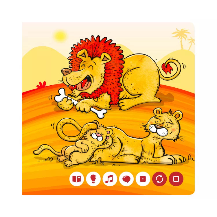 Dowiedz się, gdzie żyją, co jedzą i jakie mają zwyczaje dzikie zwierzęta z różnych zakątków świata. Interaktywna mówiąca miniksiążka przedstawi zwierzęta z buszu, czy pustyni. Dzieci poznają żyrafy, słonie, hipopotamy, pingwiny i inne zwierzęta. Można wysłuchać odgłosów różnych zwierząt, dowiedzieć się informacji na ich temat i oczywiście, sprawdzić swoją wiedzę w prostym quizie.