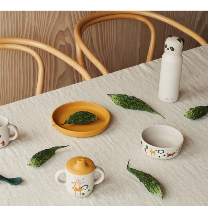 Zestaw naczyń Liewood Vivi to idealny wybór na początek przygody z samodzielnym jedzeniem. Wykonany z wysokiej jakości silikonu, bezpiecznego w kontakcie z żywnością, jest trwały, miękki i łatwy w utrzymaniu czystości. Zestaw obejmuje talerzyk, miseczkę, kubeczek i łyżeczkę, dzięki czemu świetnie sprawdzi się zarówno podczas codziennych posiłków, jak i w podróży. Naczynia mają odpowiedni rozmiar dla małych rączek, a ich lekka i wytrzymała forma ułatwia dziecku naukę jedzenia w bezpieczny i przyjemny sposób.