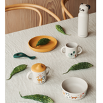 • zestaw: talerz, miska, kubek i łyżeczka – wszystko, czego potrzeba do posiłku