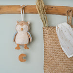 Dzięki praktycznej zawieszce, łatwo przymocujesz ją do łóżeczka, fotelika lub wózka. Śliczny, pastelowy design sprawia, że sówka stanowi także piękną dekorację dziecięcego pokoju, a jej urok czyni ją doskonałym wyborem na prezent, np. na baby shower.