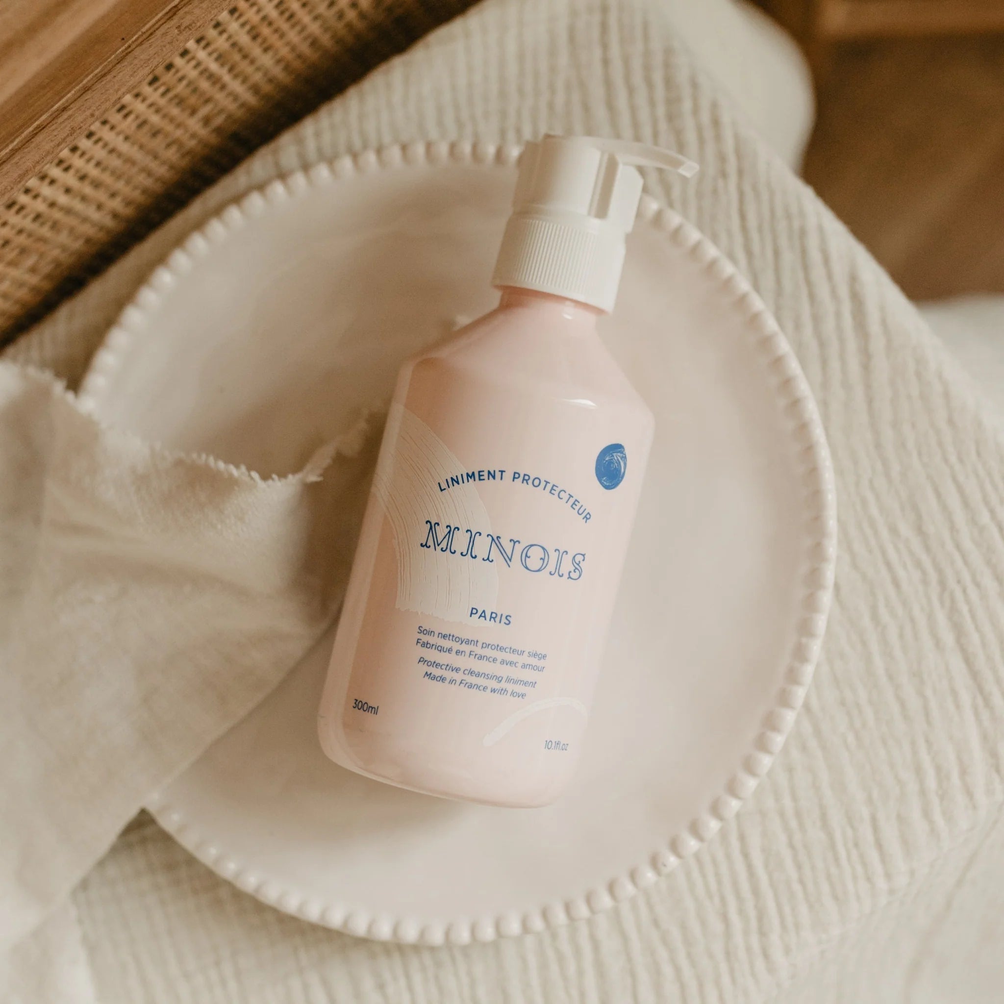 Ochronny liniment Minois Paris to wyjątkowy produkt do pielęgnacji delikatnej skóry niemowląt już od pierwszych dni życia. Inspirowany tradycyjną recepturą, delikatnie oczyszcza, nawilża i tworzy ochronny film, który izoluje skórę od wilgoci i otarć wywołanych noszeniem pieluszek.