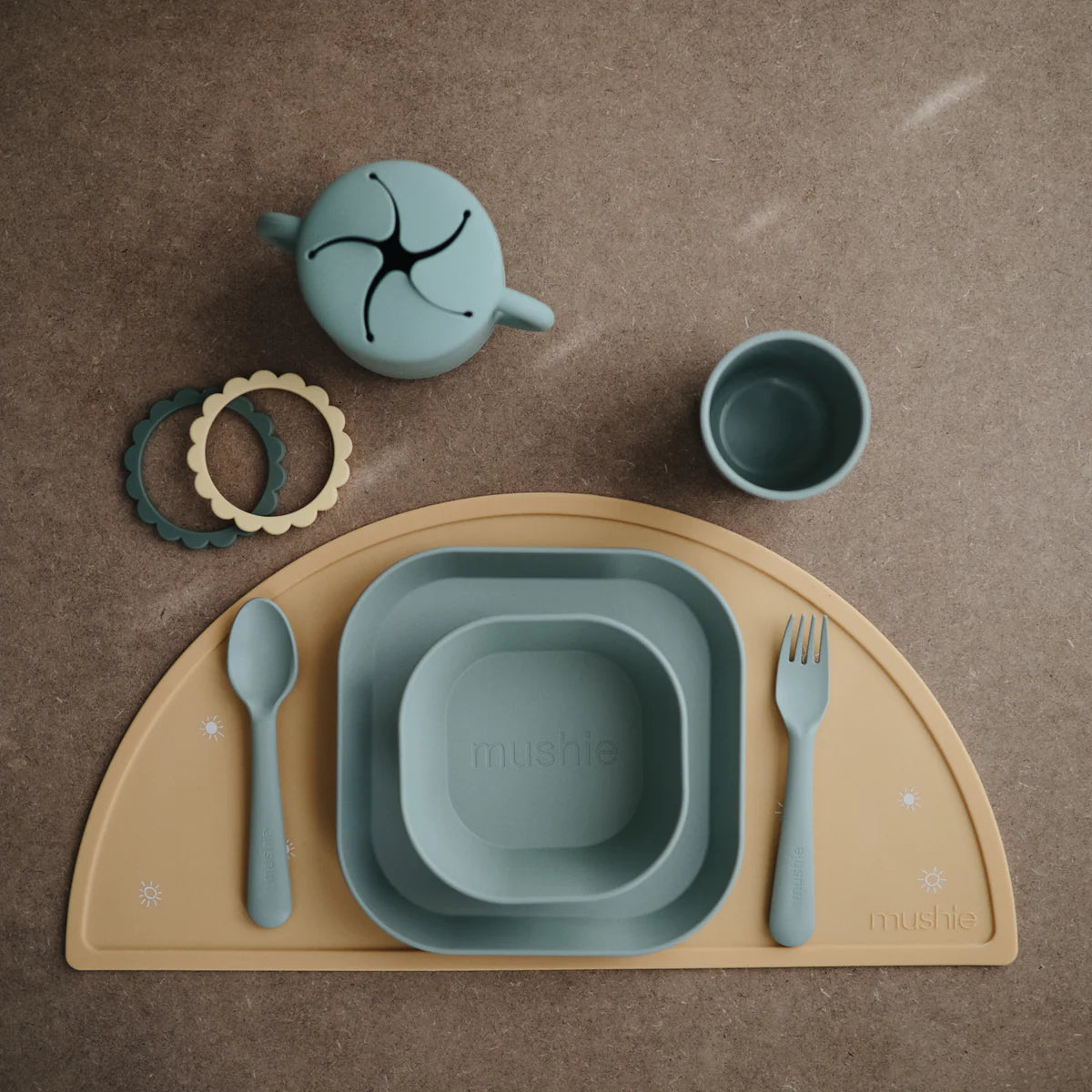 Stylowe talerzyki SQUARE wyróżniają się subtelną kolorystyką inspirowaną naturą oraz delikatnym, minimalistycznym designem. Dzięki połączeniu tych cech talerzyki są eleganckie i doskonale komponują się w nowoczesnym wnętrzu. Idealnie pasują do silikonowych śliniaków Mushie. Aby stworzyć spójną i stylową zastawę, możesz do nich dobrać pozostałe produkty Mushie w pasujących kolorach i wzorach.
