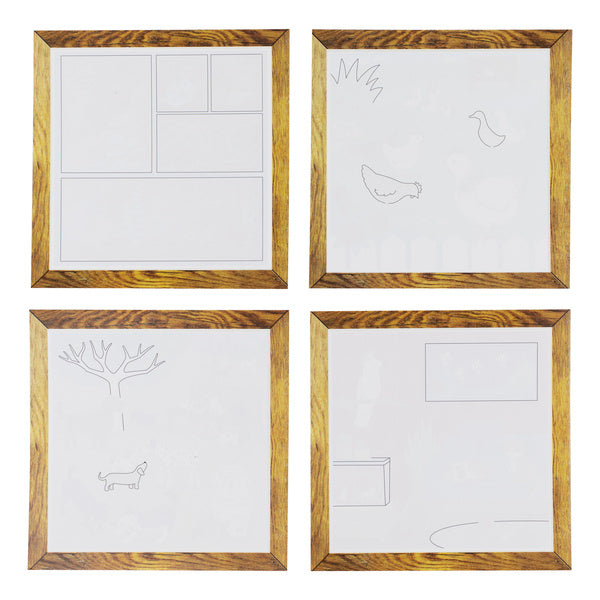 Skład zestawu: 4x wysokiej jakości karty do malowania w formie obrazów (wielokrotnego użytku), 1x wodny pędzelek